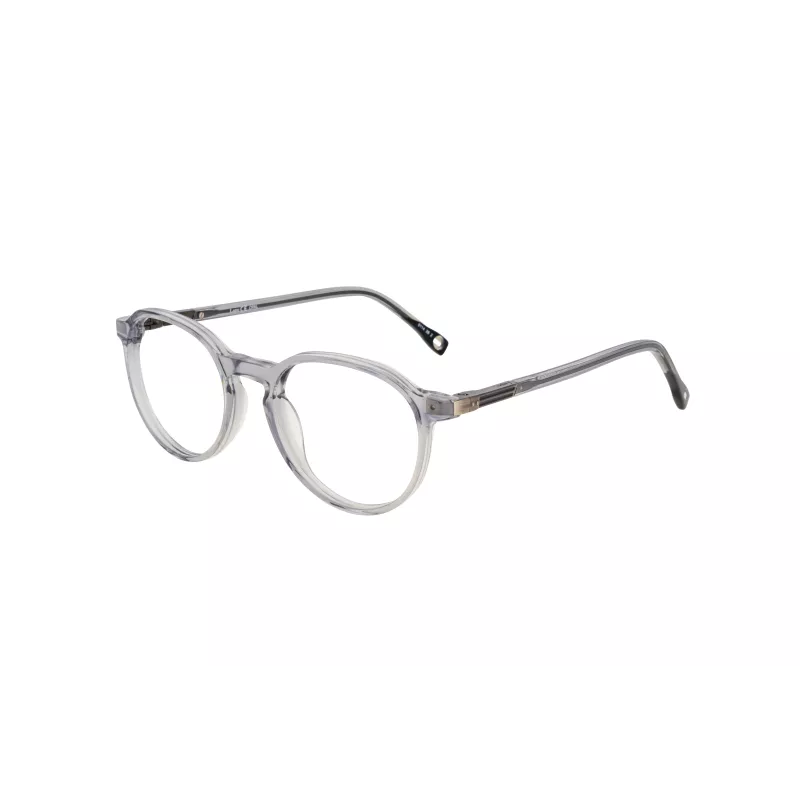 Monture de lunettes de vue Lapo à écailles grise et transparente avec des détails métalliques sur les branches.
