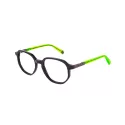 Monture de lunettes de vue Avengers noire avec des détails en métal noir et des branches vert fluo pour les enfants.